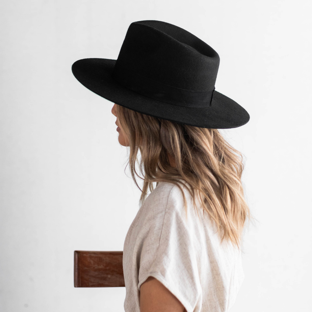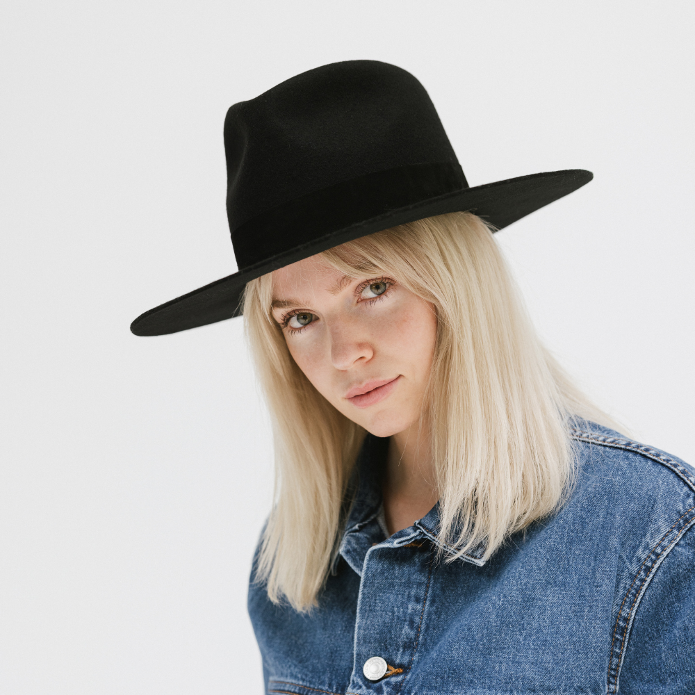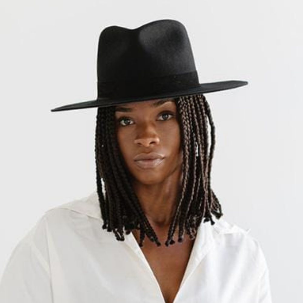 Say hello to the Miller Fedora Hat—a sharp, modern update on a true classic. With its tall, defined, pinched crown and structured, wide, flat brim, Miller delivers timeless fedora style with a fresh, elevated edge. Clean lines and bold proportions make it a standout staple for any wardrobe—easy to dress up, tone down, or personalize to your vibe. Finished with a hand-sewn suede band, it layers effortlessly with your favorite hat accessories for endless styling options. Whether you're headed to brunch, the office, or out on the town, the Miller Fedora brings structure, polish, and personality to every look. It’s classic—but cooler. Way cooler.