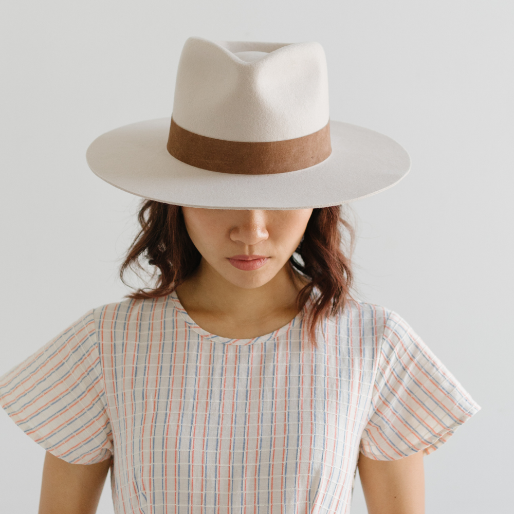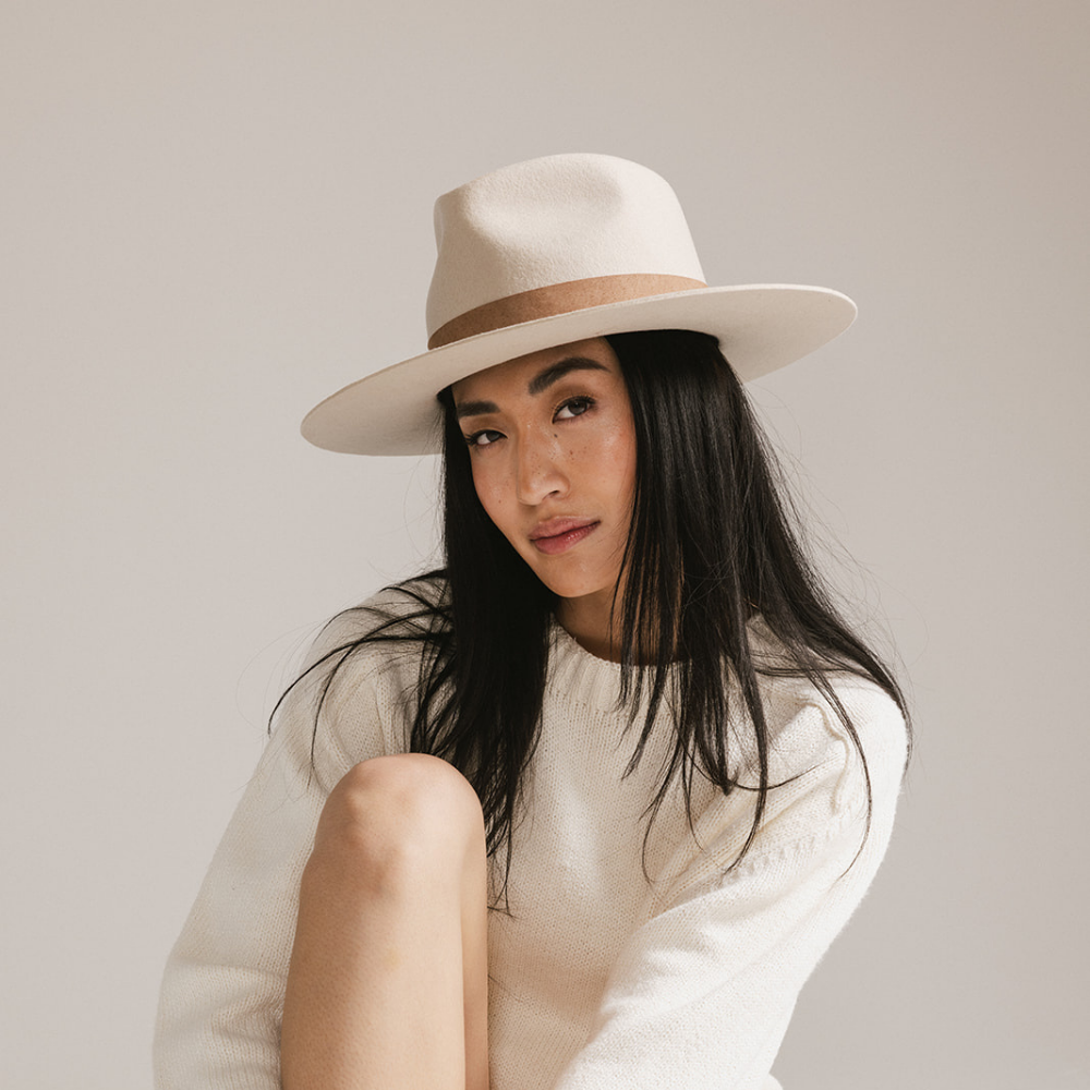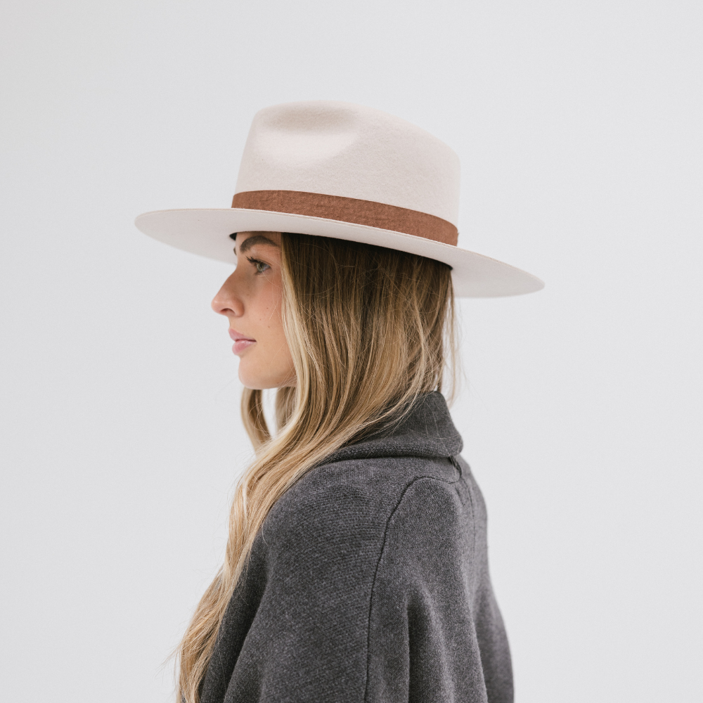 Say hello to the Miller Fedora Hat—a sharp, modern update on a true classic. With its tall, defined, pinched crown and structured, wide, flat brim, Miller delivers timeless fedora style with a fresh, elevated edge. Clean lines and bold proportions make it a standout staple for any wardrobe—easy to dress up, tone down, or personalize to your vibe. Finished with a hand-sewn suede band, it layers effortlessly with your favorite hat accessories for endless styling options. Whether you're headed to brunch, the office, or out on the town, the Miller Fedora brings structure, polish, and personality to every look. It’s classic—but cooler. Way cooler.