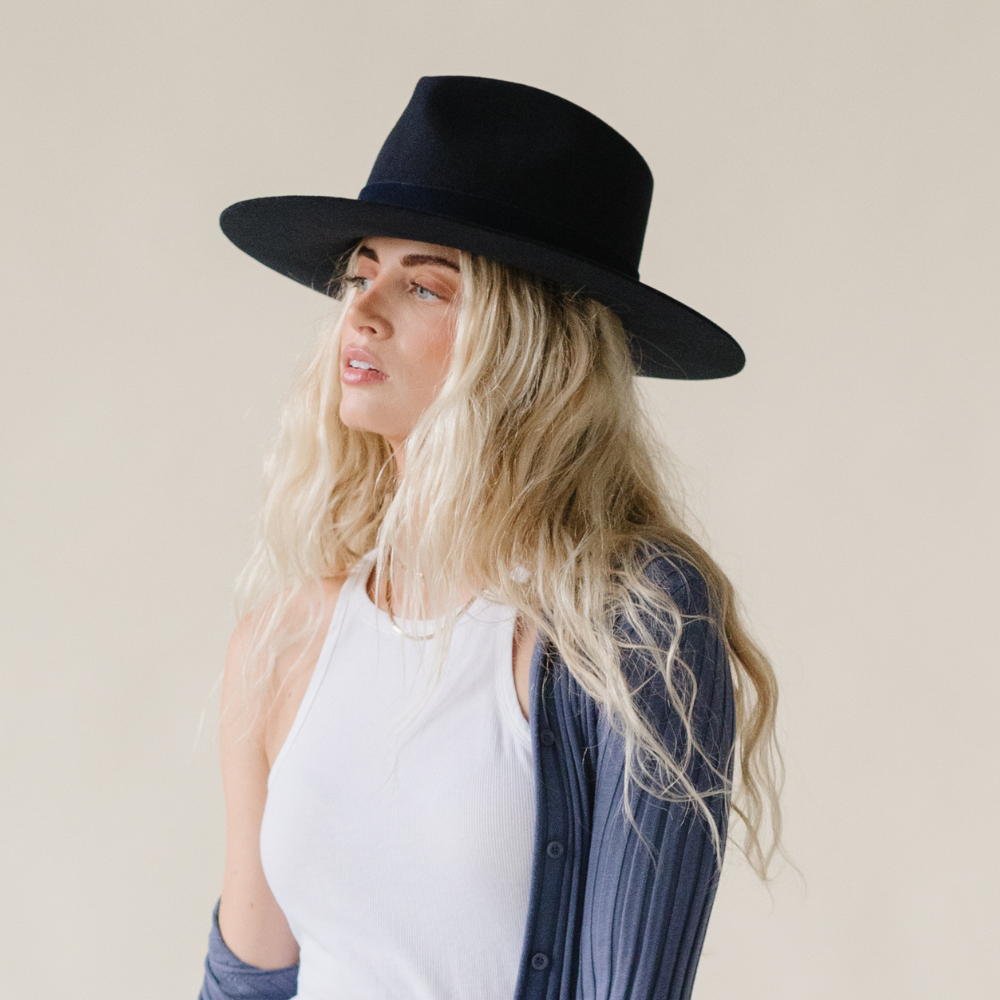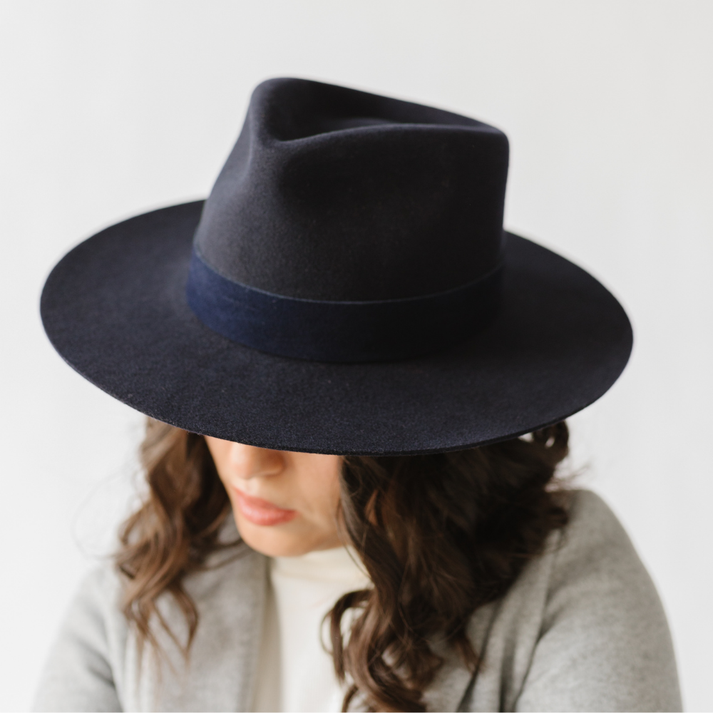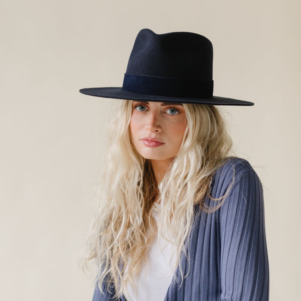 Say hello to the Miller Fedora Hat—a sharp, modern update on a true classic. With its tall, defined, pinched crown and structured, wide, flat brim, Miller delivers timeless fedora style with a fresh, elevated edge. Clean lines and bold proportions make it a standout staple for any wardrobe—easy to dress up, tone down, or personalize to your vibe. Finished with a hand-sewn suede band, it layers effortlessly with your favorite hat accessories for endless styling options. Whether you're headed to brunch, the office, or out on the town, the Miller Fedora brings structure, polish, and personality to every look. It’s classic—but cooler. Way cooler.
