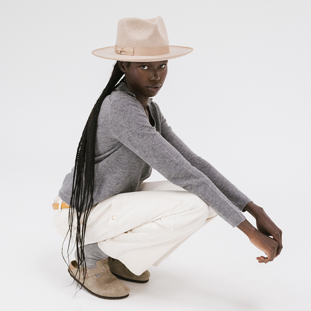 The Zephyr Rancher Hat is the felt hat that flatters every face and fits seamlessly into any style. With its timeless teardrop-shaped crown and medium upturned stiff brim, this hat effortlessly balances classic Western influence with modern elegance. Designed to complement any outfit, the Zephyr is your go-to accessory for everyday wear or special occasions. Its structured silhouette brings a polished touch to casual looks, while adding just the right amount of edge to more dressed-up ensembles. Made from high-quality felt, this rancher hat is as durable as it is stylish, ensuring it remains a staple in your wardrobe for seasons to come. Whether you're heading to brunch or a weekend getaway, the Zephyr Rancher Hat is the versatile, must-have hat you've been looking for.
